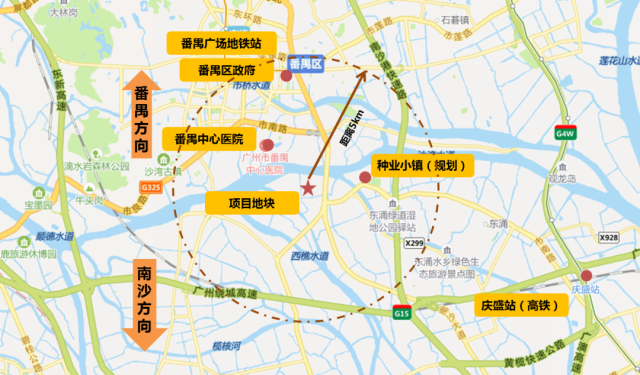 項(xiàng)目位于南沙區(qū)與番禺區(qū)交界,與番禺區(qū)僅相隔一座沙灣大橋,距離番禺區(qū)政府僅5公里,是廣州市南進(jìn)路線上的一個(gè)重要據(jù)點(diǎn)。
