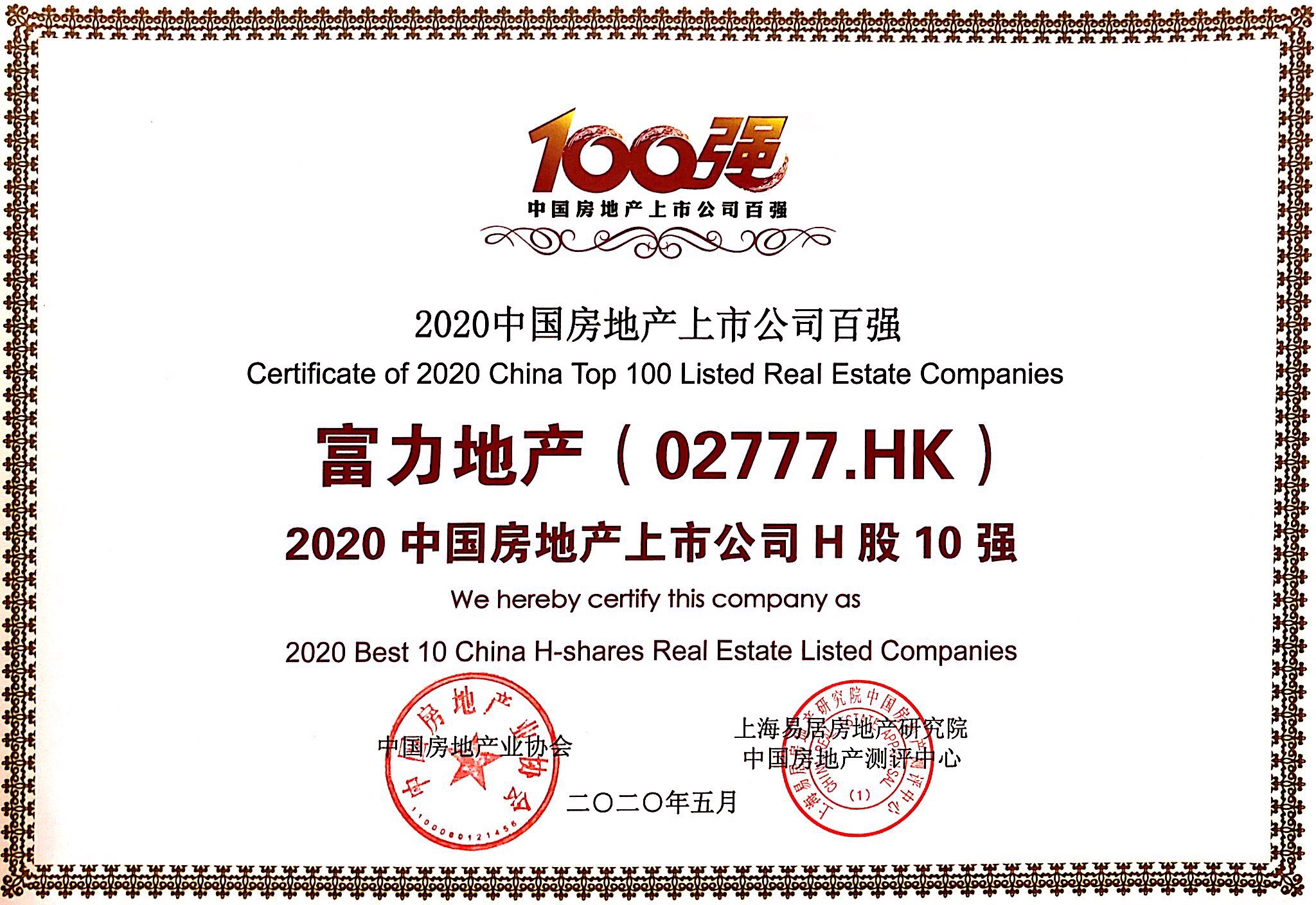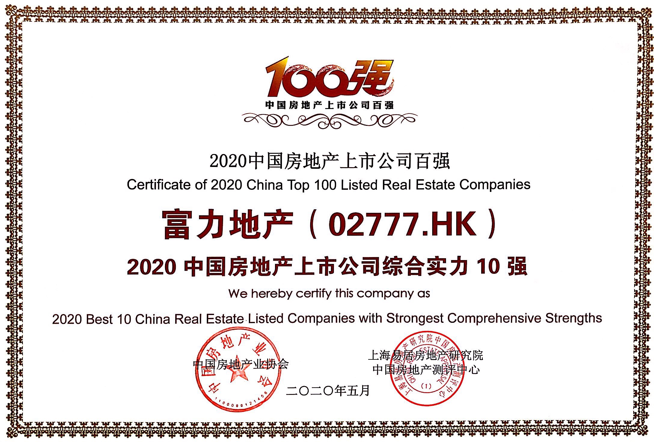 5月26日,由中國房地產(chǎn)業(yè)協(xié)會、中國物業(yè)管理協(xié)會、上海易居房地產(chǎn)研究院中國房地產(chǎn)測評中心聯(lián)合主辦的“2020中國房地產(chǎn)及物業(yè)上市公司測評成果發(fā)布會”在上海召開。在此次測評中,富力(02777.HK)連續(xù)第十年榮獲“中國房地產(chǎn)上市公司綜合實力10強”,同時榮獲“中國房地產(chǎn)上市公司H股10強”的榮譽。