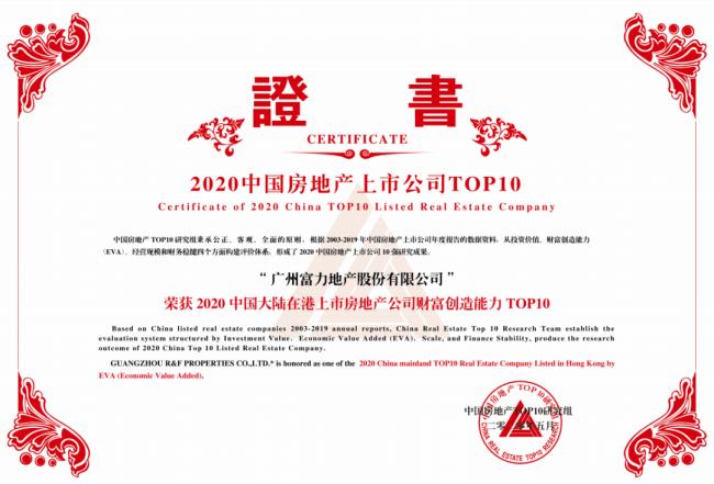 在此次研究中,富力集團(tuán)榮膺“2020中國大陸在港上市房地產(chǎn)公司綜合實(shí)力TOP10”、“2020中國大陸在港上市房地產(chǎn)公司財(cái)富創(chuàng)造能力TOP10”、“2020中國房地產(chǎn)上市公司商業(yè)開發(fā)運(yùn)營優(yōu)秀企業(yè)”等多項(xiàng)殊榮。