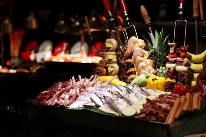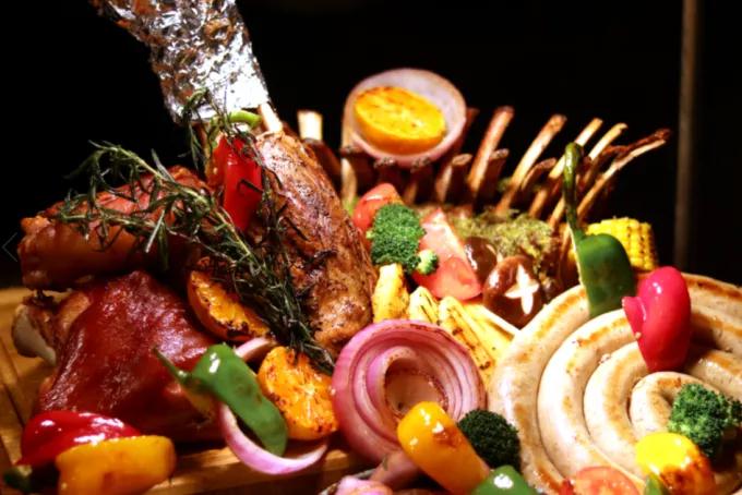 三角牛肉、雞翅、烤腸、烤雞腿等